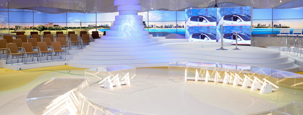 El decorado de '3D' ocupa más de 700 metros cuadrados. Delante de esta superficie se superpone una gran pantalla de LED que se desplaza por raíles circulares de más de 50 metros y permiten situarla como fondo en cualquier punto del decorado.