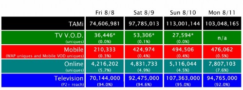 Internet no es, por ahora, una amenaza seria a la tv tradicional. La NBC ha hecho públicas las cifras de seguimiento de los Juegos Olímpicos de Pekín a través de los diferentes soportes en los que se ha emitido.